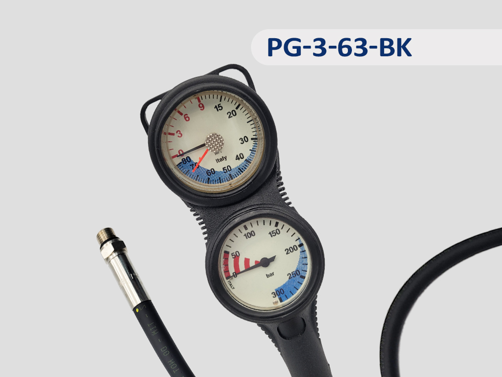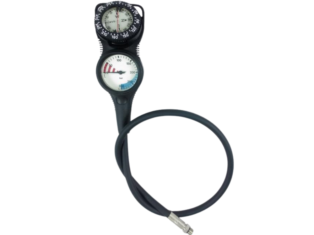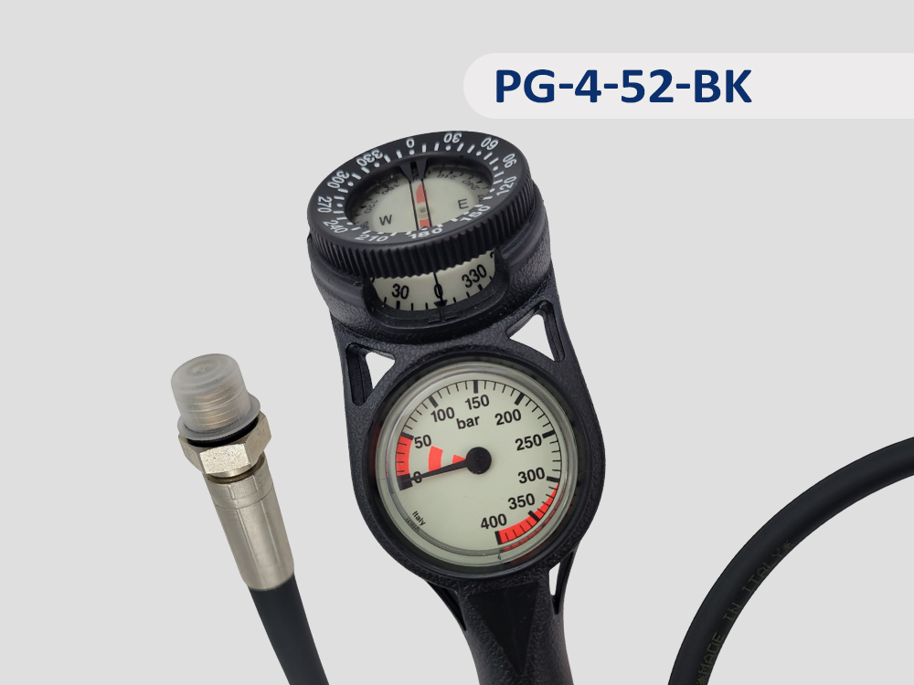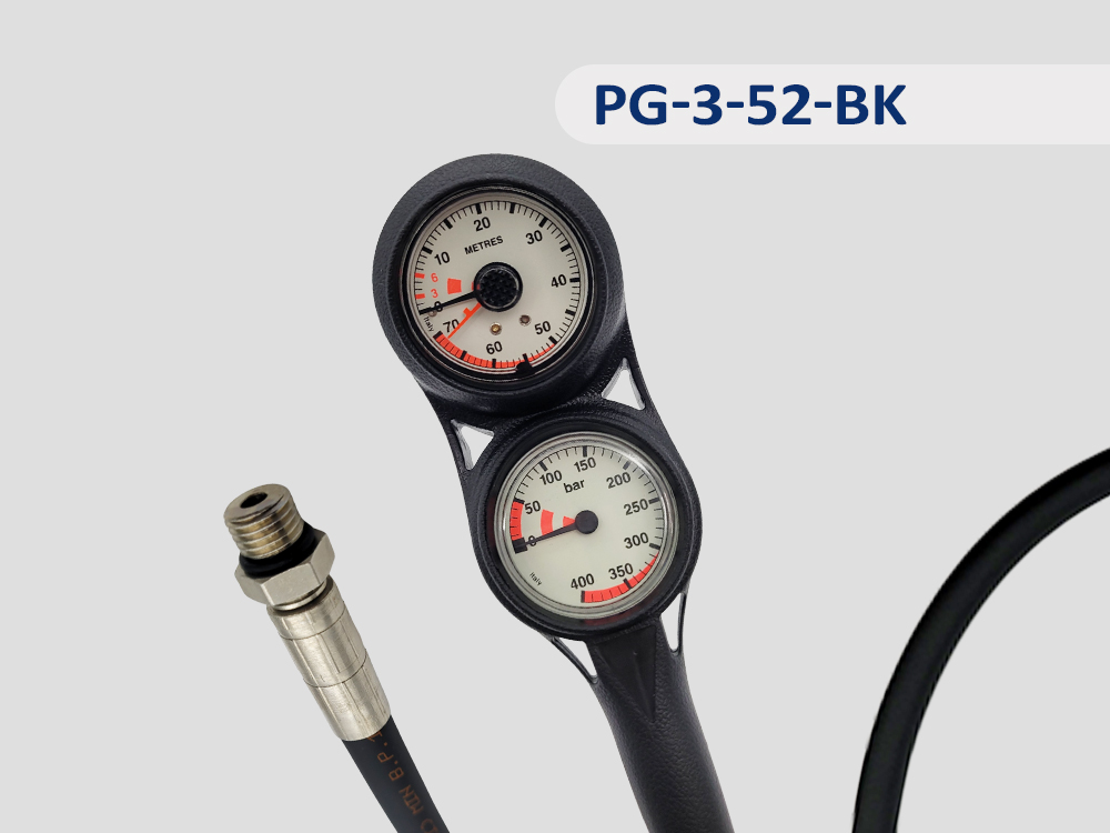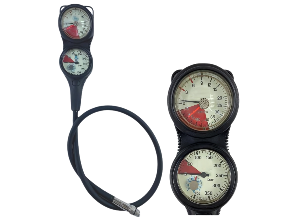 3 Gauge console: Pressure gauge and Depth-gauge on the front;Compass on the back. (Diameter 52 mm)Metric available