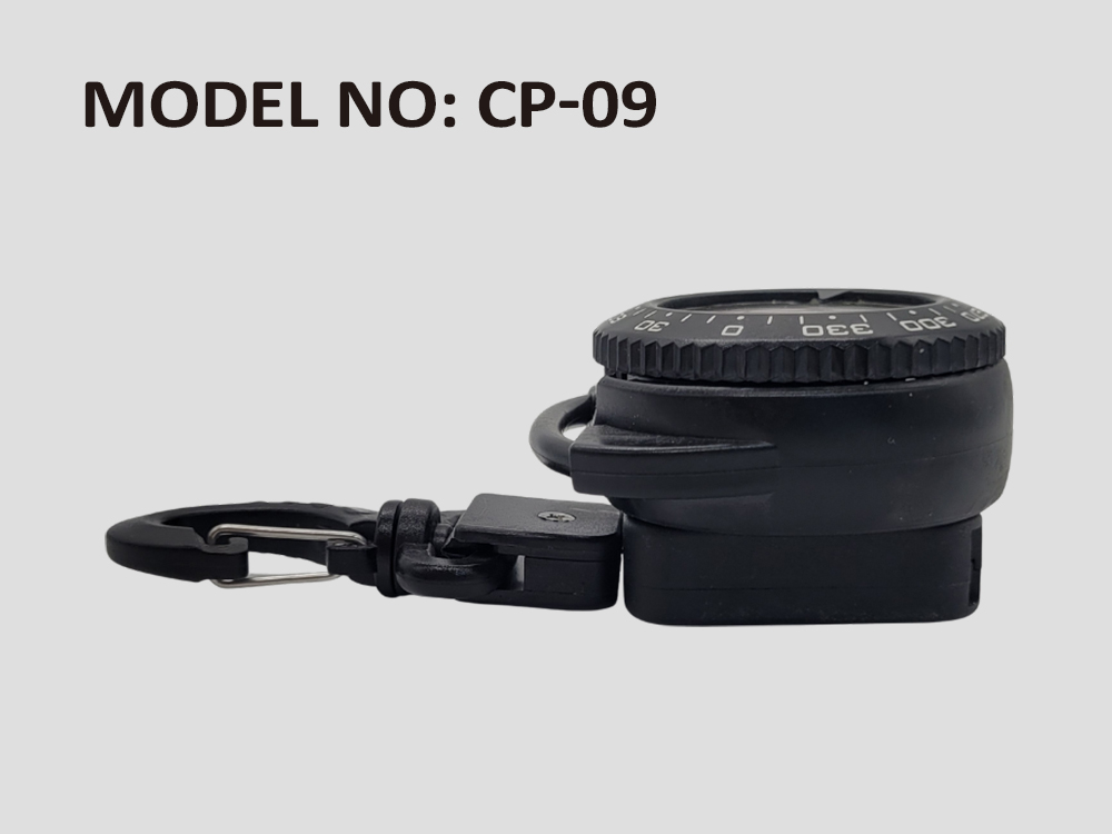 Compact compass with RetractorCord material: Stainless SteelCord length: Approx. 60 cm longCompass with a sturdy rebounding retractorColor : BlackBox for CP-09 is option, standard package is by PP bag.
