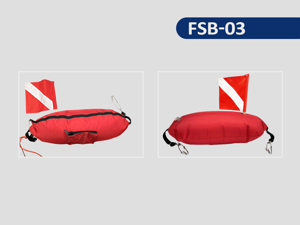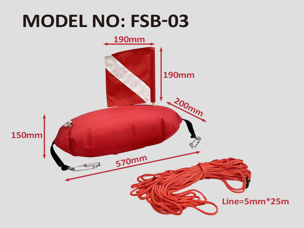 FSB-03Spear fishing float float 57x20 cmw/ shark clip (2pcs)w/ dive flag 19x19 cmw/ 5 mmx25 M line