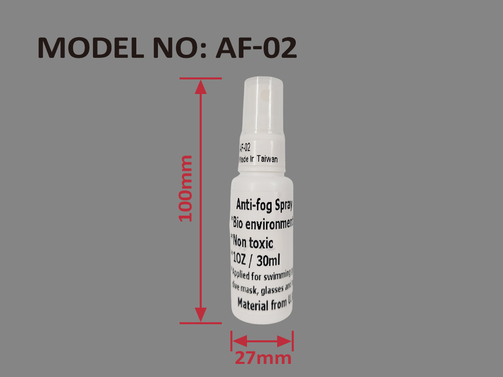 Anti-fog Spray 1 OZ / 30 mlSuitable for swimming goggles, diving masks, glasses, mirrorsBottle size:100(H)x27(Ø) mm