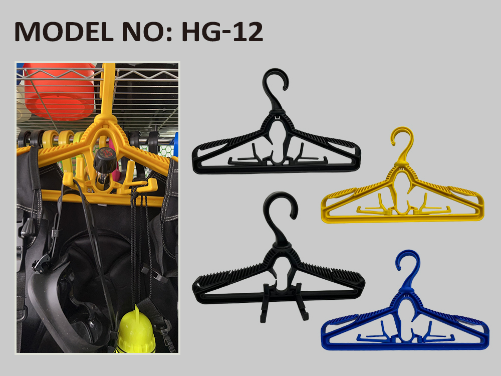 HG-12Diving use universal hanger , accessory hangerMaterial: PPSize:44x28 cmWeight:435 gColor: Black,Yellow,BlueMOQ:30 pieces of the same color