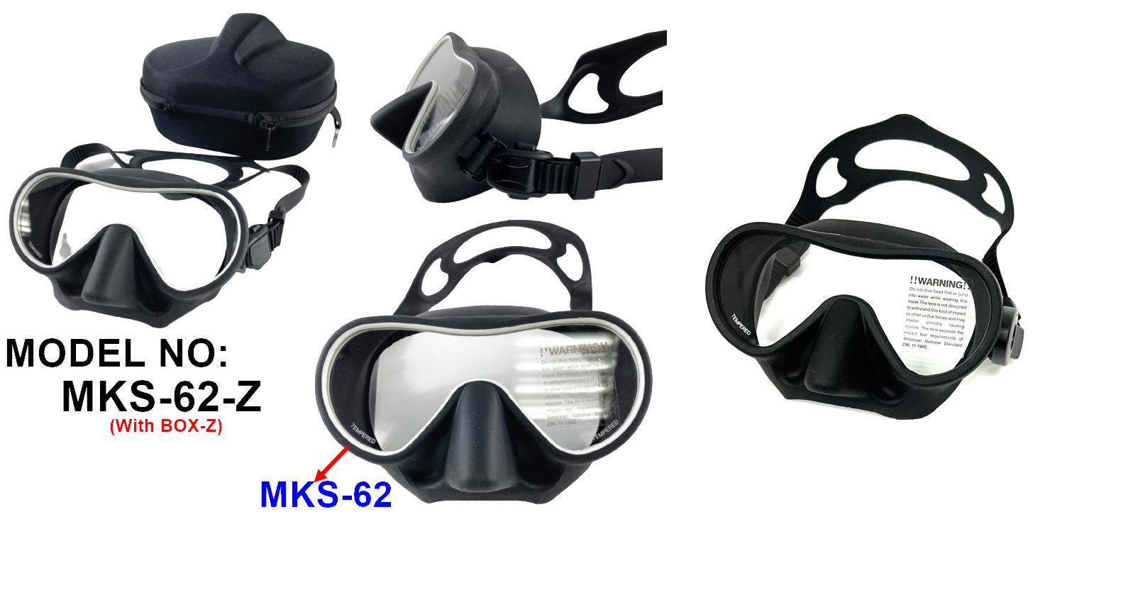 SCUBA DIVEFREE DIVING USEFrameless Mask, low-volume,tempered glass, single Lens,With zipper lock storage box.