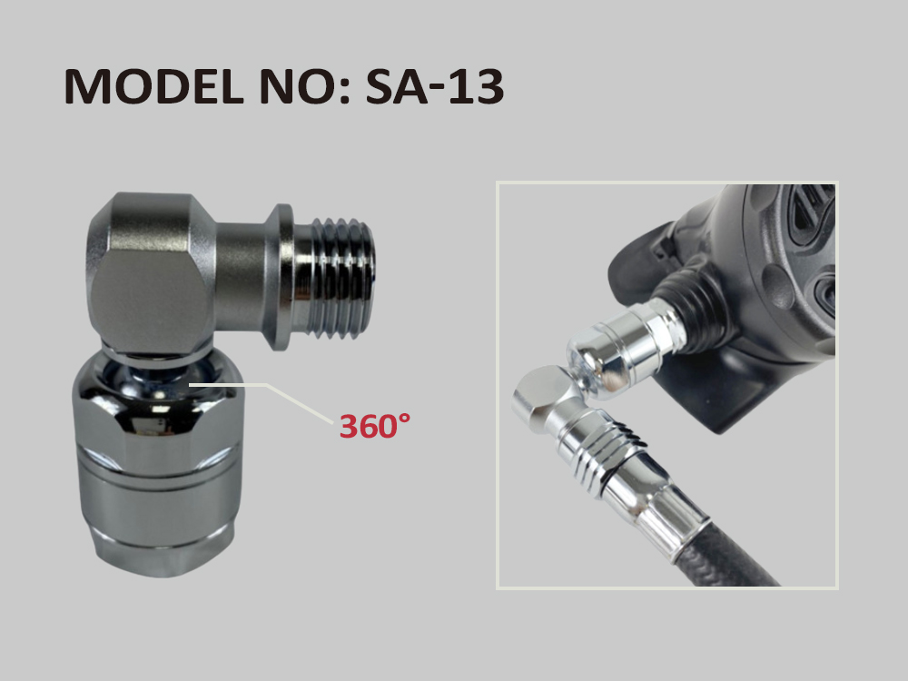 SCUBA DIVERegulator 360 Degree Swivel Adaptor with 90 Degree AngleFemale: 9/16-18 UNFMale: 9/16-18 UNF